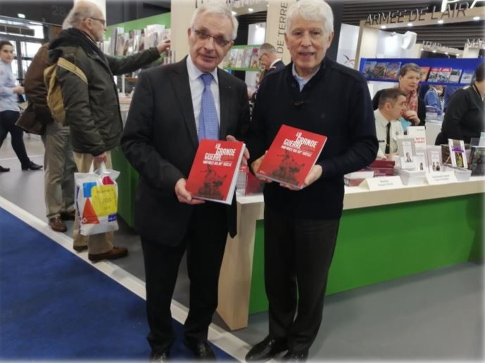 Raymond Wey de l’AAMSSA et Jean-Pierre Lopez sur le stand du Ministère des Armées au Salon du livre le 15 mars 2019