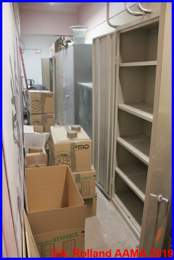 Le personnel du Musée a quitté les Algéco pour reprendre sa place dans leurs nouveaux locaux. En même temps, nos anciens bureaux, que nous avions déménagés en 2016 pour laisser la place aux travaux liés à la Grande Galerie, ont été entièrement vidés. Les archives, livres et revues sont stockés en sous-toit et les meubles en sous-sol. Dans une prochaine phase nos nouveaux emplacements seront remis en état avant d’être à notre disposition. Il parait évident que nous devrons investir dans l’ameublement.
