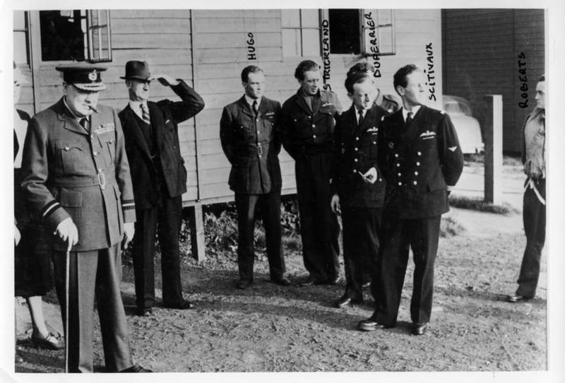 Winston Churchill avec le groupe Ile de France en 1941.Au premier plan le capitaine Dupérier et le capitaine de corvette de Scitivaux (MAE)
