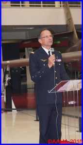 Puis à 11h les portes se sont ouvertes pour accueillir l’ensemble des invités. Parmi eux, Philippe Galli préfet de la Seine-Saint-Denis, le général Abrial, président du Conseil d’administration du Musée de l’Air, le général Vitry, directeur adjoint du Musée de l’Air, Jacques Suspène qui avait revêtu son plus bel uniforme et notre président François Chouleur.