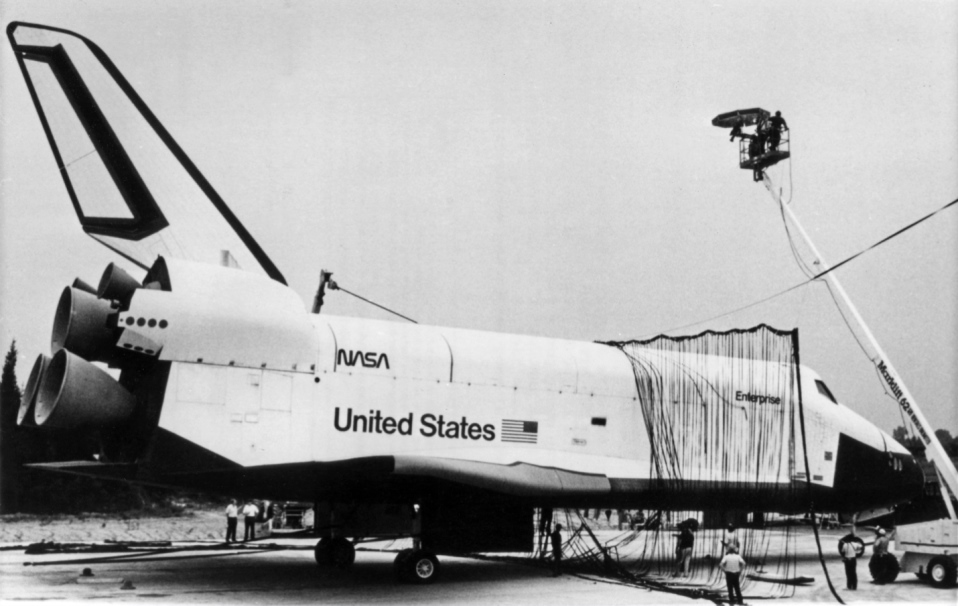 Enterprise au cours d’essais à l’aéroport Dulles de Washington DC (Crédit NASA)