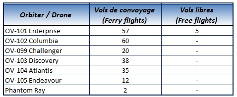 Tableau, vols convoyage, Boeing 747 SCA, Orbiter