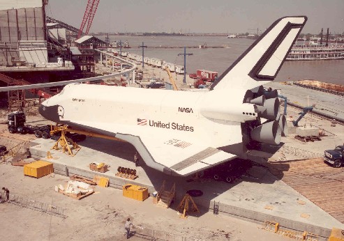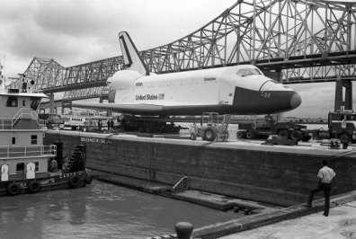 Avant d’arriver sur le site d’exposition, le composite 747/OV-101 fera une escale de quatre jours sur la base de Vandenberg, puis à Little Rock Air Force Base (Arkansas) le 27 mars, et enfin sur le terrain de Brookley Field à Mobile (Alabama) le 29. Après sa dépose du Boeing et démontage du carénage aérodynamique, Enterprise est installé sur la barge ‘Paul Bunyon’ pour un transfert maritime et fluvial le 3 avril jusqu’à la Nouvelle Orléans où il est exposé dans l’United States Pavilion au bord du Mississippi River.