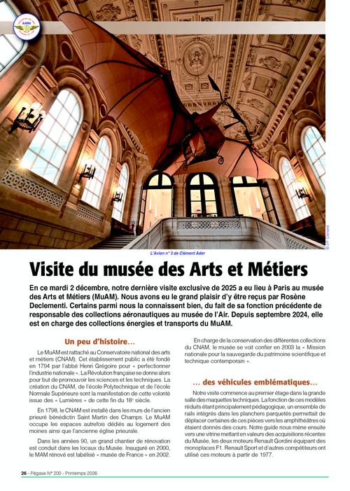 Dernière visite exclusive de 2025 au musée du CNAM, où nos membres on pu découvrir des pièces techniques exceptionnelles et pas seulement aéronautiques. Voir l’Avion n°3 d’Ader et le Blériot XI de la traversée de la Manche, quel plaisir.