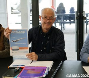Notre président Jean-Pierre Cornand termine la rencontre et en tant que rédacteur en chef de notre revue Pégase montre le dernier numéro en cours d’acheminement.