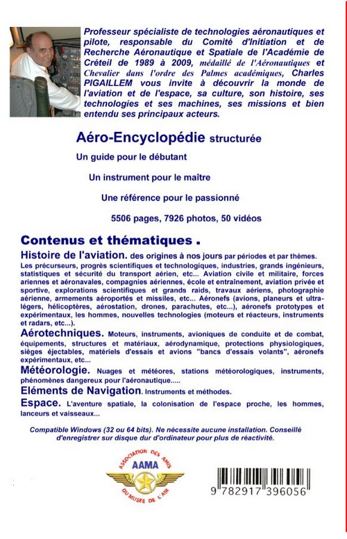 Professeur spécialiste de technologies aéronautiques et pilote, responsable du Comité d’Initiation et de Recherche Aéronautique et Spatiale de l’Académie de Créteil de 1989 à 2009, médaille de l’Aéronautique et Chevalier dans l’ordre des Palmes académiques, Charles Pigaillem vous invite à découvrir le monde de l’aviation et de l’espace, sa culture, son histoire, ses technologies et ses machines, ses missions et bien entendu ses principaux acteurs. 5506 pages – 7926 photos – 50 vidéos.