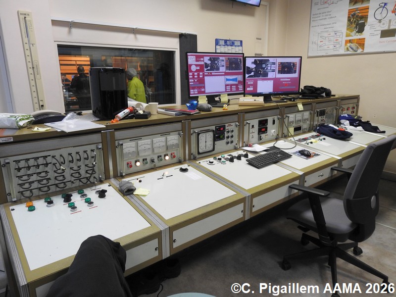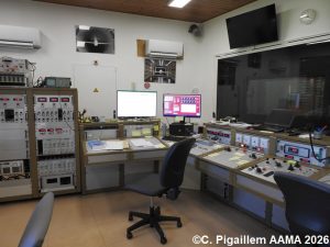 Pour finir le tour des souffleries, Robert Clodoald nous emmène dans la salle de contrôle de la S10. Elle dispose encore de son pupitre de commande d’époque, mais l’équipement a été modernisé au fil des décennies. La soufflerie S10 fut construite en 1984 grâce à un cofinancement de Renault avec le CNAM, et elle est l’une des premières en France à proposer des essais à échelle 1 pour l’automobile.