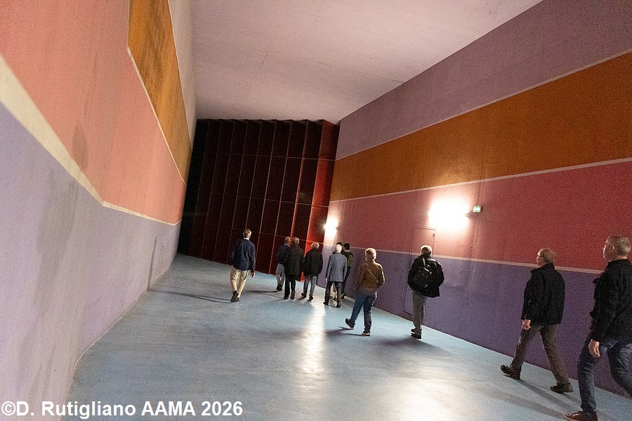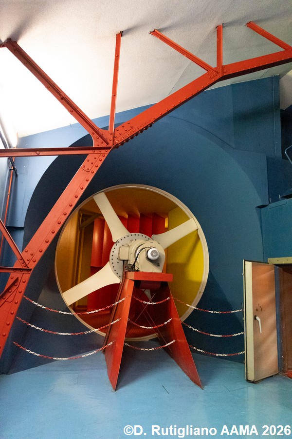 Notre groupe se rend vers la soufflerie S4 construite en 1976. Avant d’entrer dans la salle de commande, nos membres peuvent visualiser l’un des deux ventilateurs, d’un diamètre de 4,6 m, qui aspirent l’air de la veine d’essais, ainsi qu’un couloir adjacent à l’abri du vent.