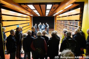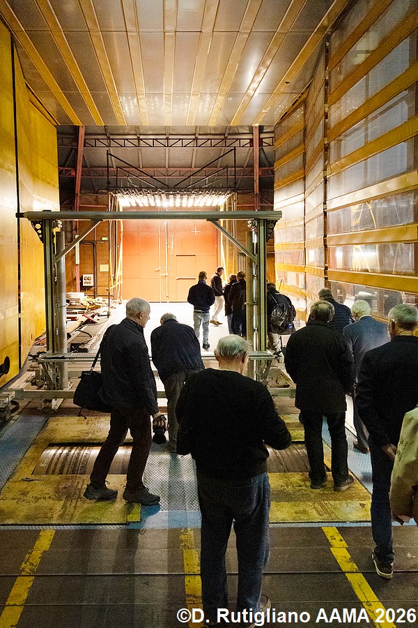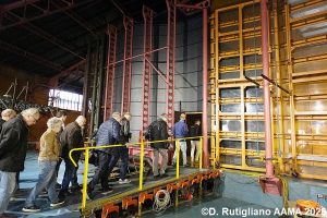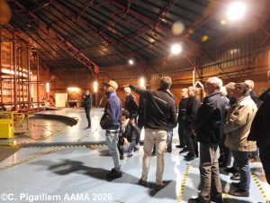 Rare privilège, le groupe est invité à pénétrer dans cet antre impressionnant, dont les parois sont ajustables, se développant jusqu’à 6 m en largeur, 6 m en hauteur et 17 m en longueur, pouvant accueillir les plus gros véhicules civils ou militaires, comme le char Leclerc..
