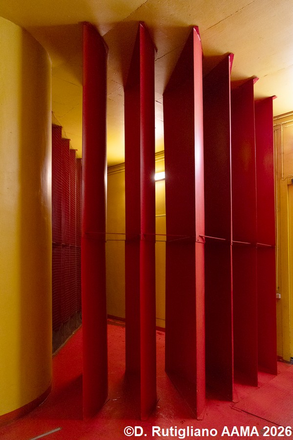 En retournant dans la salle de commande pour observer les préparatifs de programmation de l’essai, nous avons également repéré ces panneaux verticaux dans les deux conduits, qui améliorent le guidage du flux d’air.