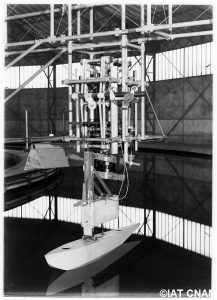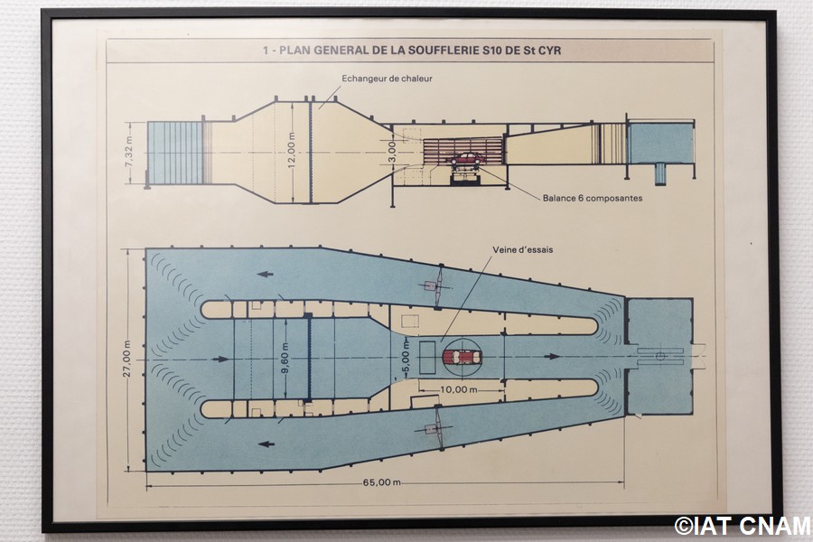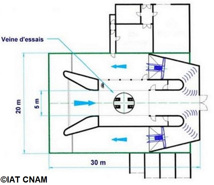 Autre détail historique, la soufflerie actuelle est installée sur un faux plancher recouvrant un bassin circulaire datant des années 1930, vestige de l’époque où l’IAT menait des essais pour les coques d’hydravions, jusqu’aux années 50. Le bras rotatif faisant tourner ces formes dans le bassin a depuis été démonté, mais le bâtiment a conservé son utilité et sa charpente métallique typique des ateliers Eiffel.