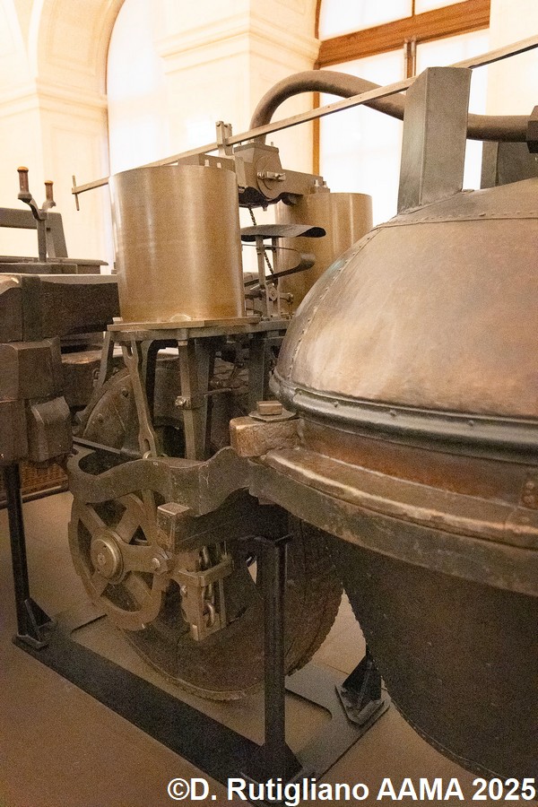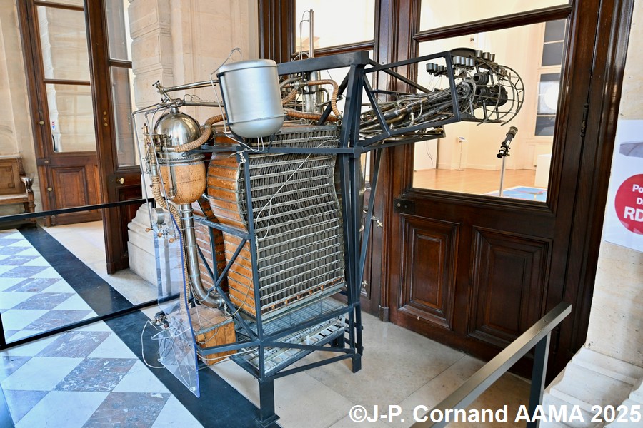 A propos de puissance, le système propulsif de l’Avion n°3 est exposé juste à côté. Cette machine était équipée de deux moteurs à vapeur de 20 ch (un moteur de 10 à 12 ch pour l’Eole), alimentés par une même chaudière brûlant de l’alcool. Véritable bijou technologique, ce système présentait une masse au cheval de 3,8 kg/ch. Ce ne sera qu’en 1907, avec leur dernier moteur à explosion de 20 à 25 ch, que les frères Wright atteindront ce niveau de performance.